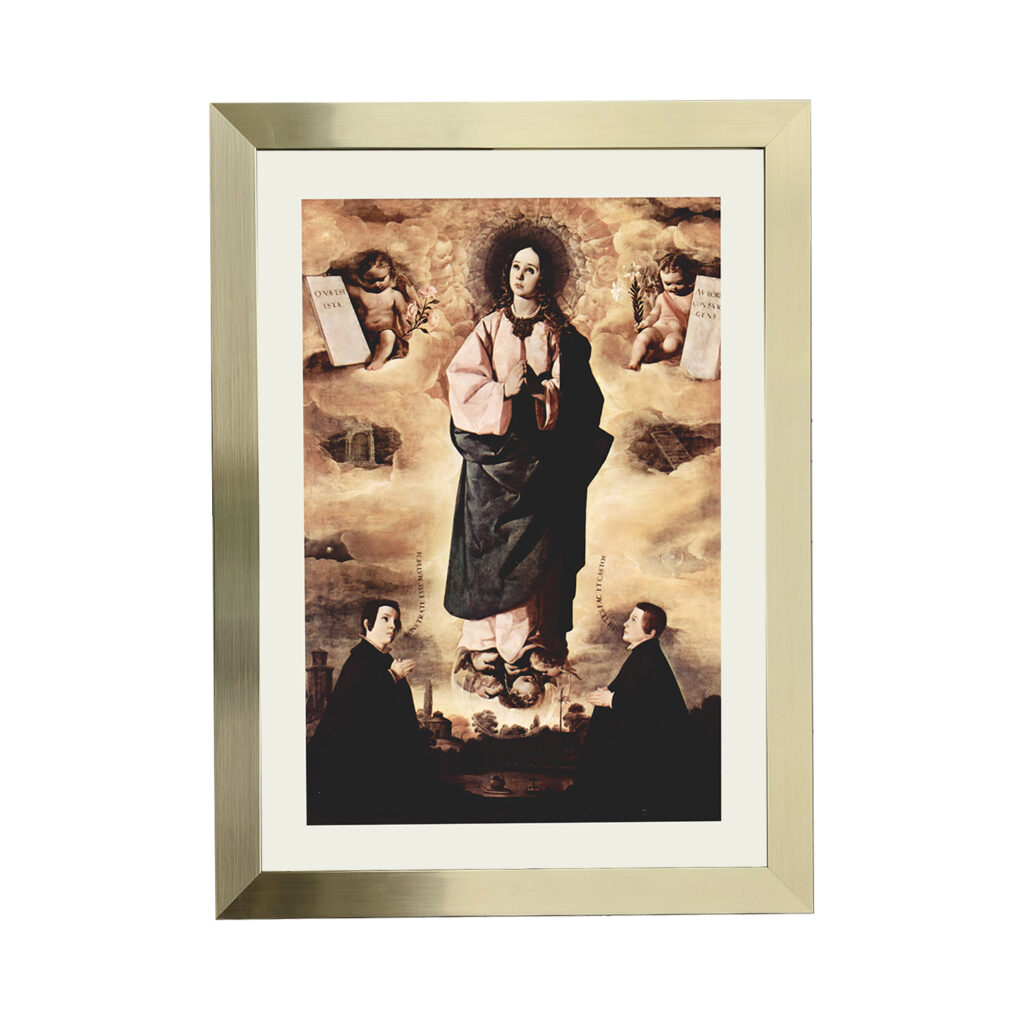 Obrazy oznaczone jako reprodukcja są drukarskimi kopiami cyfrowymi w oprawie Donum Artis. Ramy z tworzywa termoplastycznego (dekor mat lub połysk). Papier plakatowy o gramaturze 200 g/m² (mat) na płycie HDF, farby eko-solwent, antyrefleksyjny laminat zapewniający trwałość podłoża oraz żywotność koloru. Waga podawana w przybliżeniu ±0,5 kg