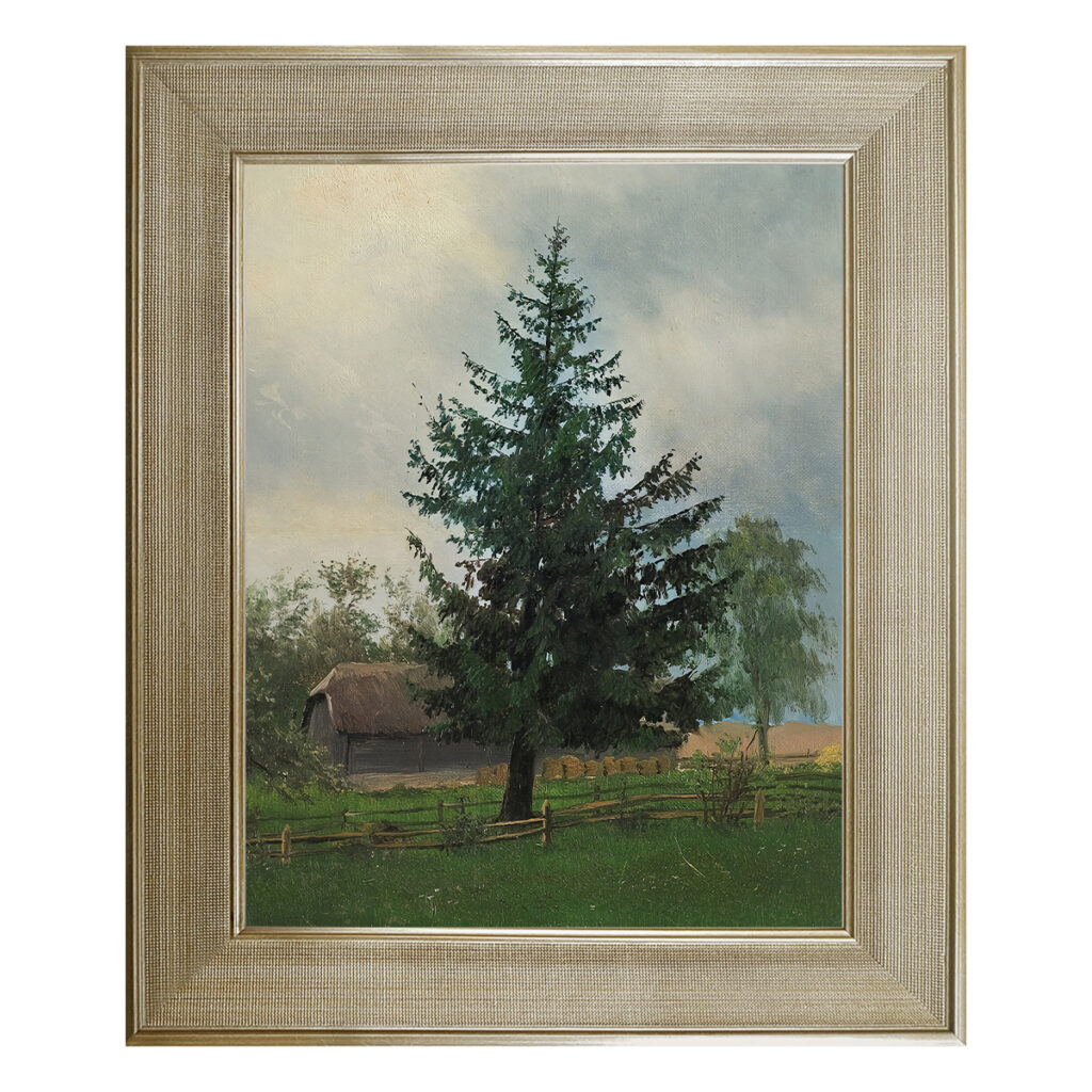 Brzozowy las w promieniach słońca. Reprodukcja poligraficzna krajobrazu Waldemara Pernacha, 2009 r.