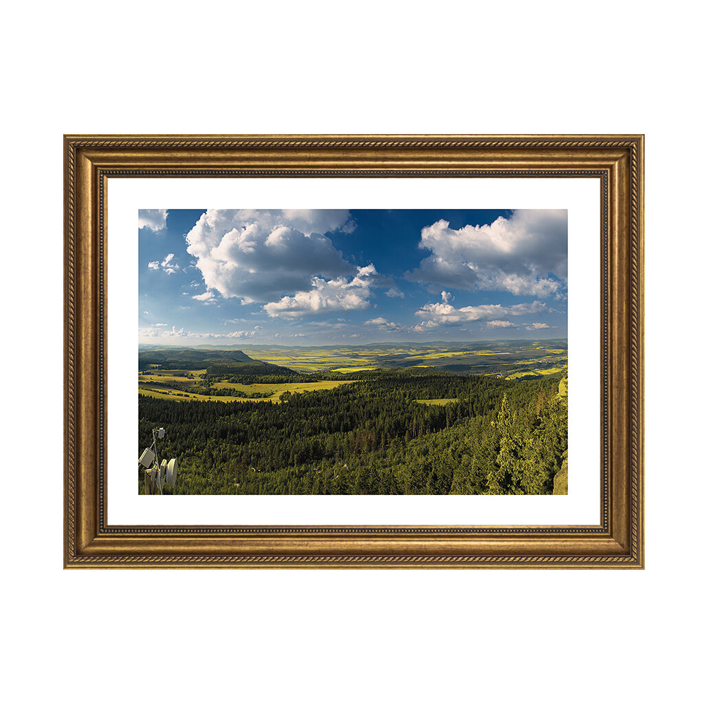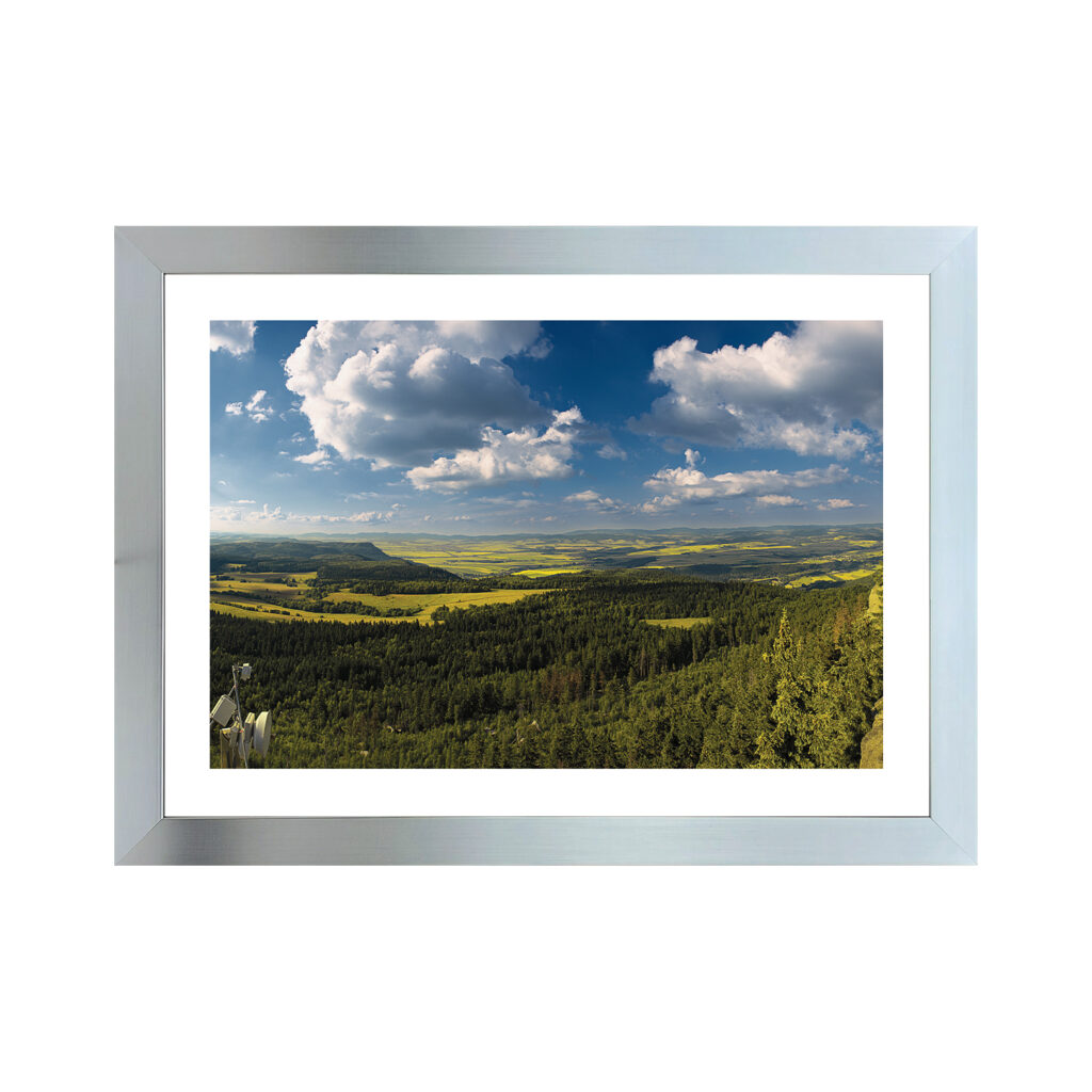 Obrazy oznaczone jako reprodukcja są drukarskimi kopiami cyfrowymi w oprawie Donum Artis. Ramy z tworzywa termoplastycznego (dekor mat lub połysk). Papier plakatowy o gramaturze 200 g/m² (mat) na płycie HDF, farby eko-solwent, antyrefleksyjny laminat zapewniający trwałość podłoża oraz żywotność koloru. Waga podawana w przybliżeniu ±0,5 kg