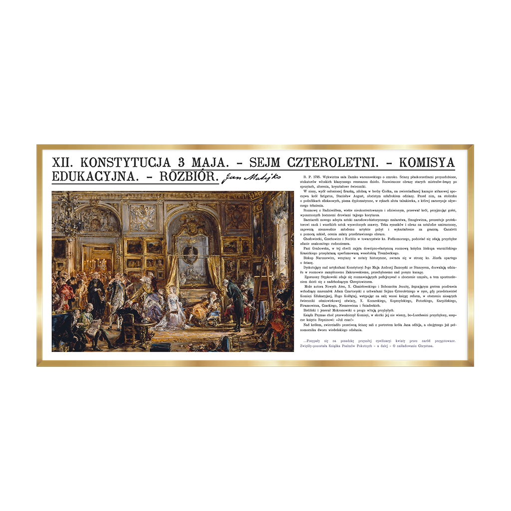 Obrazy oznaczone jako reprodukcja są drukarskimi kopiami cyfrowymi w oprawie Donum Artis. Ramy z tworzywa termoplastycznego (dekor mat lub połysk). Papier plakatowy o gramaturze 200 g/m² (mat) na płycie HDF, farby eko-solwent, antyrefleksyjny laminat zapewniający trwałość podłoża oraz żywotność koloru. Waga podawana w przybliżeniu ±0,5 kg